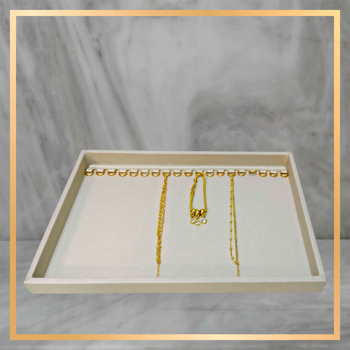 Bandeja Expositora de Colares e Pulseiras Off White – Forrada em Tecido de Luxo com Capacidade para 19 Joias - Pequena - SEM TAMPA
