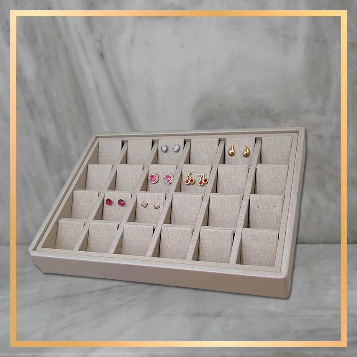 A Bandeja para Brincos em Off-White é a escolha ideal para quem deseja combinar funcionalidade e sofisticação, seja para uma vitrine que impressiona ou para uma organização pessoal que reflete bom gosto e estilo.