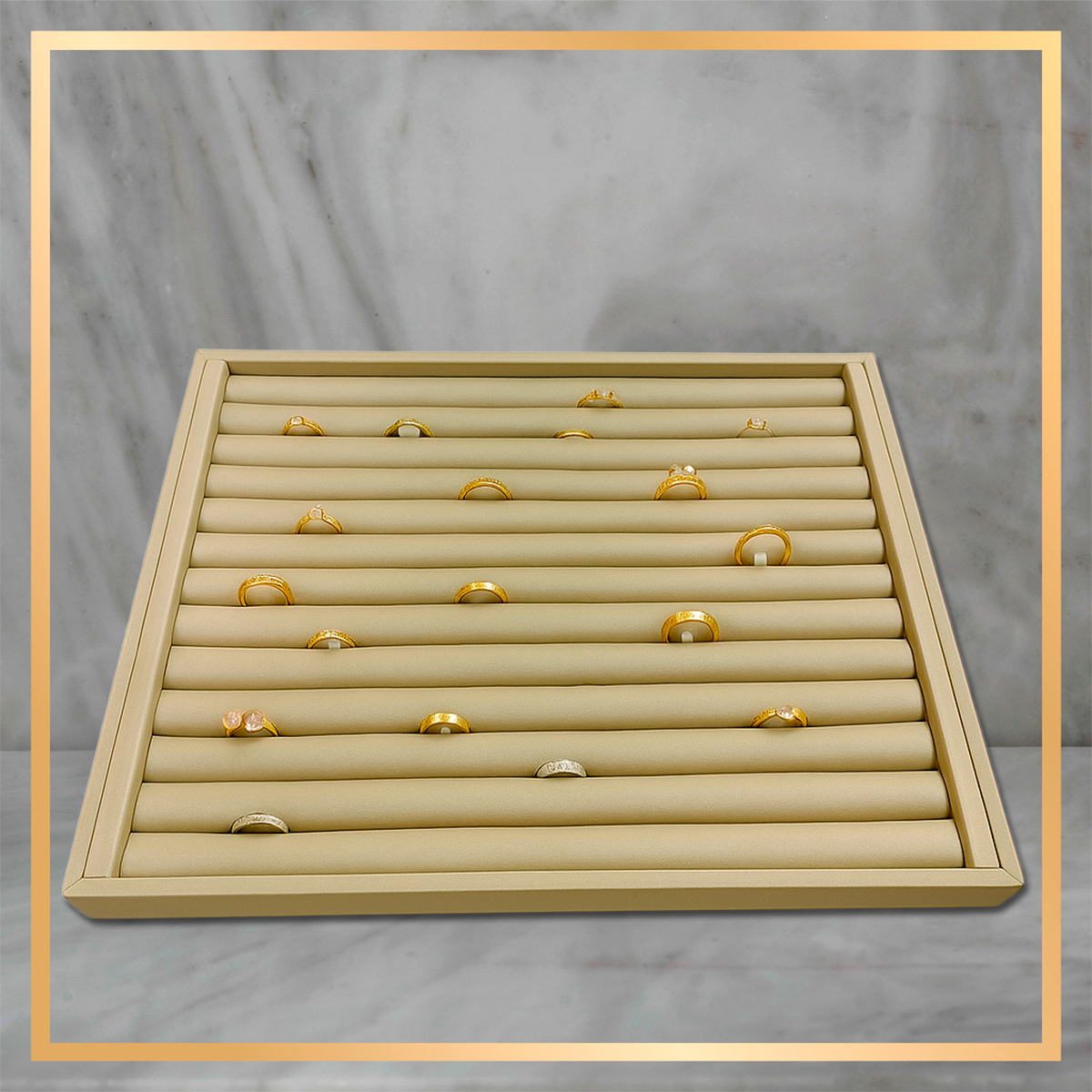 Projetada para quem busca praticidade sem abrir mão da elegância, a bandeja grande de anéis com roletes é a escolha ideal para vitrines, gavetas de loja ou uso profissional. Produzida com tecido de luxo de alto padrão, essa peça garante apresentação impecável e proteção para cada anel.