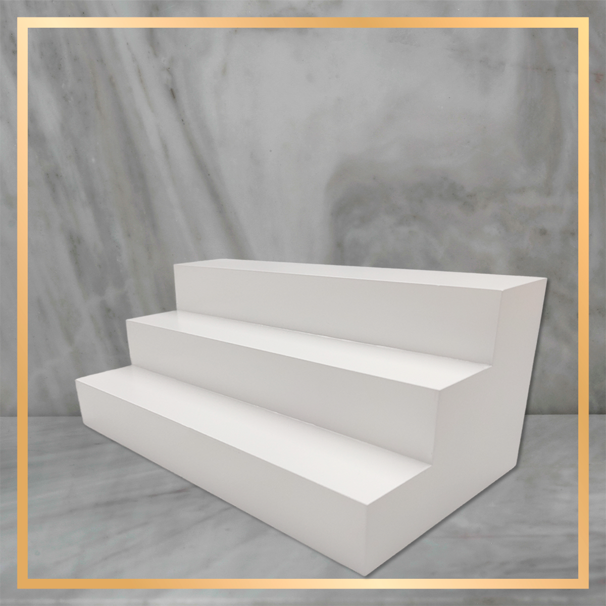 Apresentamos o nosso elegante expositor de vitrine em formato de escada / bancada, uma peça sofisticada confeccionada em MDF com um acabamento de pintura laca impecável. Projetado com uma abordagem de design discreto e funcional, esse expositor tem como objetivo principal realçar a decoração da sua vitrine de maneira sutil e elegante.